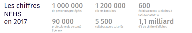 Aujourd’hui, NEHS propose des solutions personnalisées, à l’ensemble des acteurs du monde de la santé, personnes physiques et personnes morales et intervient dans six univers : l’assurance (complémentaire santé et prévoyance, assurance de biens et responsabilité civile professionnelle des hospitaliers), la banque et les financements, les services industriels, les prestations intellectuelles, le digital et les médias spécialisés dans la santé.